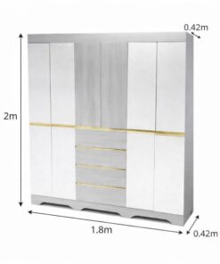Moreover, two mirrors on the middle doors help you check your outfit and add light to your room, making it both practical and stylish.