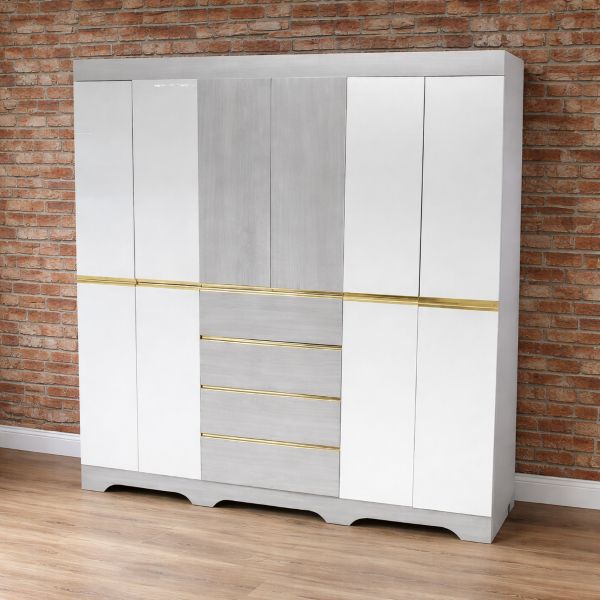 Modern 4-Door Wardrobe with Hanging and Packing Space. This 1.8m-wide wardrobe blends smart storage in a classic style and design. To begin with, it offers both hanging space and ample room for folded items. Specifically, the sturdy rod behind the two outer doors lets you hang clothes easily. Meanwhile, the right doors open to reveal shelving—perfect for organised packing. Additionally, four drawers slide smoothly on durable metal runners, giving you effortless access.
