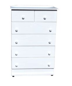 White chest of drawers with six drawers, fully assembled and locally manufactured. Moreover, it’s a compact yet functional 6-drawer cupboard, making it perfect for any room that needs additional storage. Furthermore, finished in solid white, it adds a clean, elegant touch to any space. MDF (Supawood) planks are used to manufacture this cupboard. This wood is durable and increases the lifespan of the cabinet.