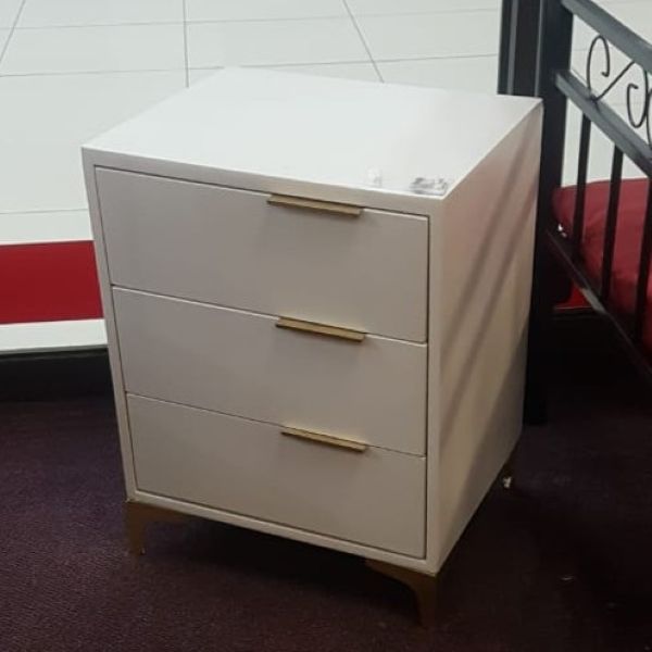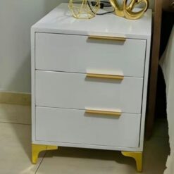 1 review for Bedside Table Golden legs, White, Three Drawers, Metal handles