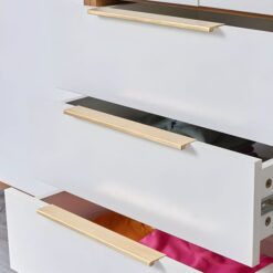 This bedside table is strong and durable. Thus, this wood is sturdy and ensures a long lifespan. Material: The front, top, and sides are made from sturdy 25mm super-wood boards, which offer great durability. However, the back panel is ‘raw’ Masonite board, which helps reduce overall weight. Therefore, you receive a strong, sturdy chest of drawers that will last.