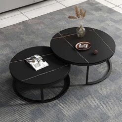 1 review for Round Black Table Set – Nesting – Marble-look tabletop – Large size