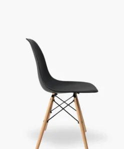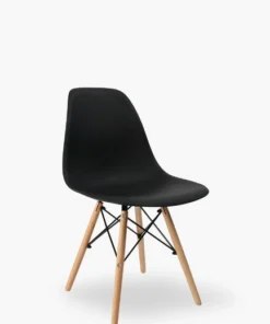 Buy these retro black chairs that deliver comfort, strength, and immediate usability. At first glance, the bold black urban look creates a striking presence; at the same time, the clean lines support both retro and contemporary interiors. Built with purpose, the clever wood-and-plastic construction blends durability with visual appeal. Inspired by mid-century modern design, the chair showcases a sculptural, armless silhouette that feels both timeless and modern.