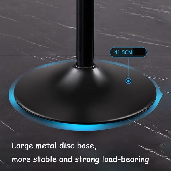 Moreover, these leatherette bar chairs brighten up any space with their functional and visually appealing design. The padded faux leather upholstery looks elegant and keeps you and your guests comfortable for hours. In addition, the black-finished pedestal base enhances the contemporary look and provides stable support.