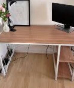 You can wipe the oak top clean with a damp cloth, and the 2-tier bookshelf also provides convenient storage for books, files, or décor. Furthermore, the strong metal frame supports the desk securely, while tiny adjustable feet keep it stable on uneven floors. The powder-coated white frame not only looks modern but also resists scratches.