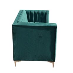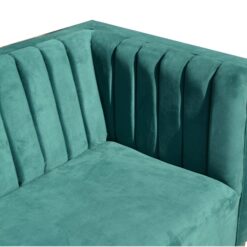 The ideal sofa to use as a statement piece. This 2-seater couch will add visual and tactile allure to any interior. The pleated backrest, velvet fabric and elegant metal legs make this a popular 2-seater couch. This piece will give your living room a stylish, modern look with a trendy personality.