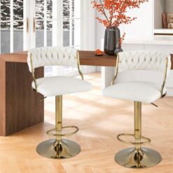 Add a touch of elegance to your kitchen island, dining area, or home bar with these sleek and versatile white bar stools with gold legs. To begin with, they feature a simple yet stylish design that delivers excellent comfort, whether you’re enjoying a meal or simply unwinding after a long day.
