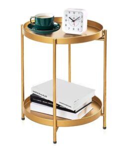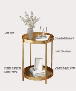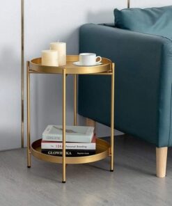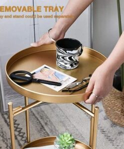This round gold tray table adds versatility and style to any home. To begin with, the table is crafted from metal, showcases a minimalist design and consists of two removable trays. A lightweight metal frame that offers both function and elegance. Moreover, the gold powder-coated finish brings sophistication.