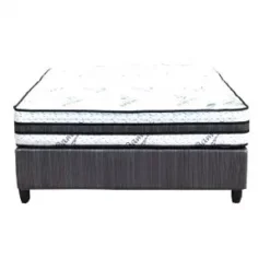 Locally manufactured queen bed base suits all bedroom styles with dark grey fabric on the side.