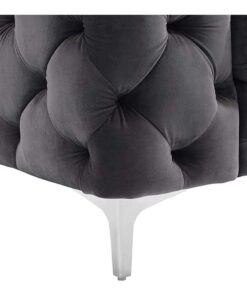Buy this Chesterfield sofa and upholster with grey velvet. Modern silver legs finish the look.
