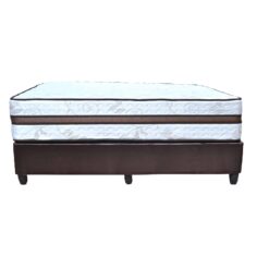 – In fact, the mattress is covered in premium white bamboo quilted jacquard fabric with dark brown inlays on the sides, while the base features the same rich fabric for a seamless design. As a result, the bed not only looks appealing but also guarantees long-term durability.