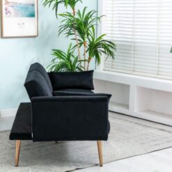 Upgrade your living space with this modern black 2-seater sleeper sofa that combines comfort, practicality, and timeless design. The couch opens easily into a spacious sleeper — almost the size of a double bed — so you can relax during the day and host guests at night. Because it’s designed with high-density foam, you’ll enjoy firm yet soft support in both sitting and sleeping positions.