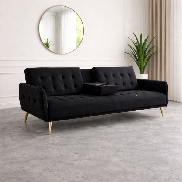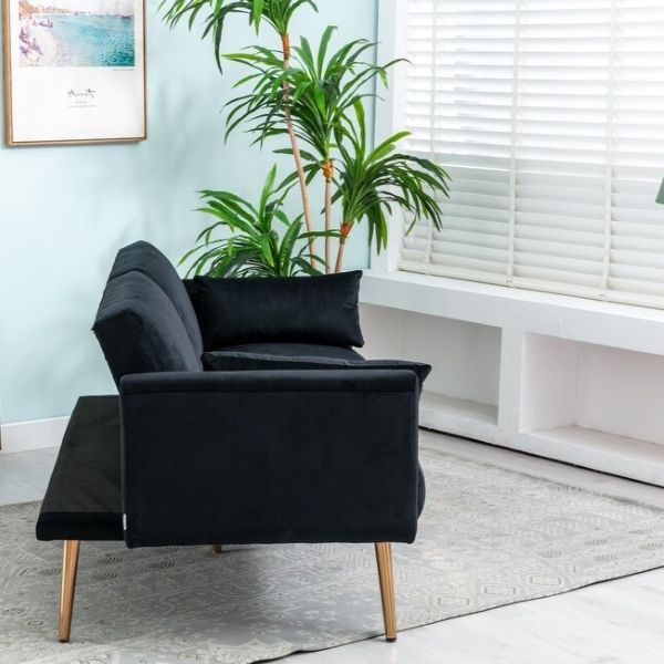Quality black velvet fabric is used for the upholstery, giving the couch a luxury look and feel. especially because it is fitted with modern golden legs. The legs are durable, stylish and easy to clean.