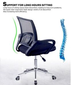 In addition, the mesh back promotes air circulation, while the contoured shape provides lumbar support. We covered the backrest in breathable black mesh and padded the seat with long-lasting black fabric to increase comfort. As a result, the chair becomes an excellent choice for libraries, classrooms, and home offices.
