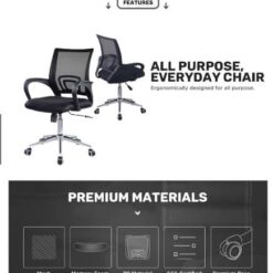 In addition, the mesh back promotes air circulation, while the contoured shape provides lumbar support. We covered the backrest in breathable black mesh and padded the seat with long-lasting black fabric to increase comfort. As a result, the chair becomes an excellent choice for libraries, classrooms, and home offices.