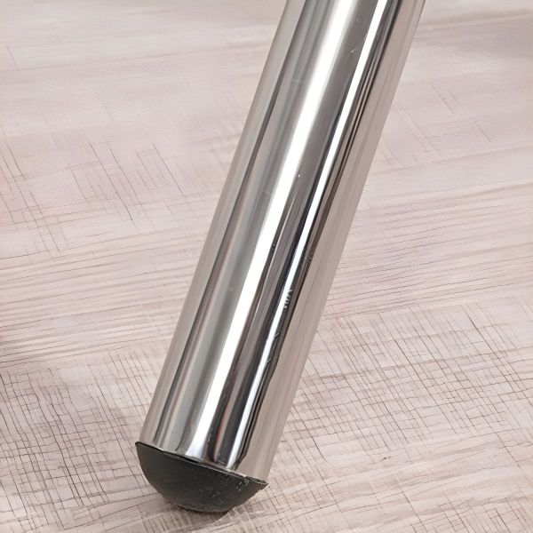 Supported by elegant silver chrome legs, the table not only looks sophisticated but also offers reliable stability. In addition, both legs are covered with plastic caps to protect your floors. These caps also ensure the table stays firmly in place, making it ideal for busy homes or high-traffic areas.