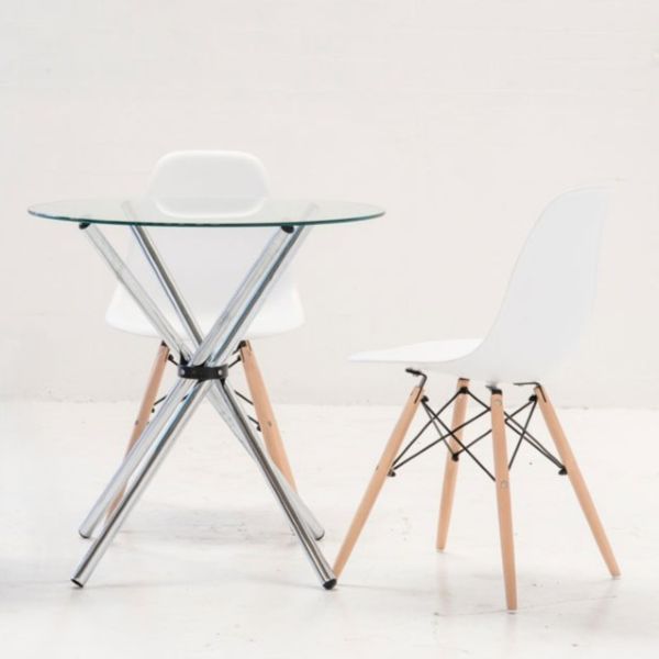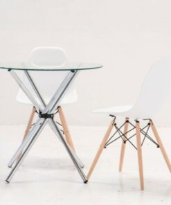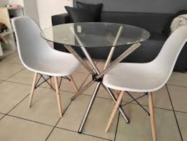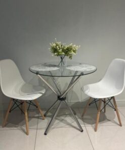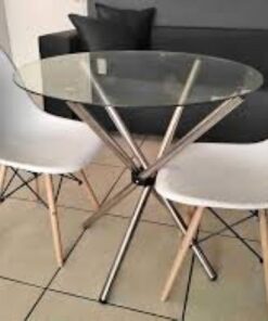 Round Table Four Chairs – Glass Dining set – 5 pieces – Assembled