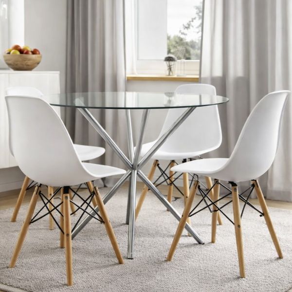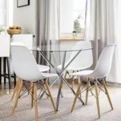 Round Table Four Chairs – Glass Dining set – 5 pieces – Assembled