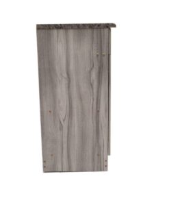 Regarding dimensions, the approximate height is 0.9m, the depth 0.4m, and the width 1.2m. The front, sides, and interior display a light grey tone and might be slightly different to what is visible on the website. However, the back shows a light brown, raw wood colour. Structurally, 15-mm-thick super-wood panels were used to construct the cabinet; therefore, the cabinet is of medium strength. Conversely, the back panel is light brown, raw Masonite board. Additionally, lightweight boards allow the unit to move easily through ‘normal-sized’ doors. This feature makes it suitable not only for homes but also for rental units or shared spaces where mobility and flexibility matter.