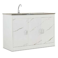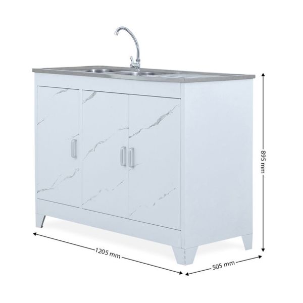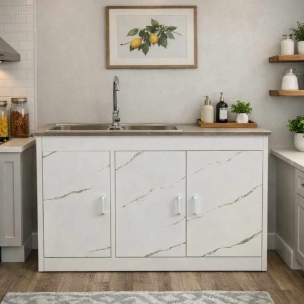 Overall, this double undercounter sink, already fitted on a white marble-looking steel cupboard, offers excellent value. Therefore, if you need a ready-made kitchen sink solution that balances affordability, functionality, and modern design, this unit delivers exactly that.