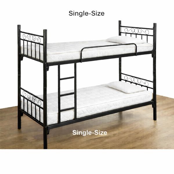 The compact and sturdy metal ladder is included. This ladder allows users to climb safely and conveniently to the top bunk. Protective guard rails on the upper bed add extra safety, helping prevent accidental falls during sleep. These safety features provide peace of mind while ensuring children sleep comfortably.